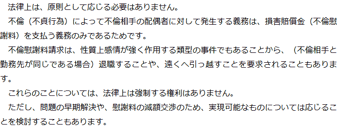 Q金銭以外の賠償を要求されていますが、応じなければいけないのでしょうか?AQ慰謝料を請求されていることが周囲にバレる可能性はありますか?A お役立ち情報・Q&A(目次)お役立ち情報・Q&Aトップお役立ち情報不貞の慰謝料請求をされた場合にやってはいけないことQ&A不倫相手の配偶者から慰謝料を請求された場合のQ&A 受付時間 平日 9時~21時、土日祝 9時~18時夜間・土日祝の相談も対応します(要予約) 所在地 〒120-0034 東京都足立区千住2-4オカバツインタワービル イースト5F (東京弁護士会所属) 0120-41-2403 お問合せ・アクセス・地図